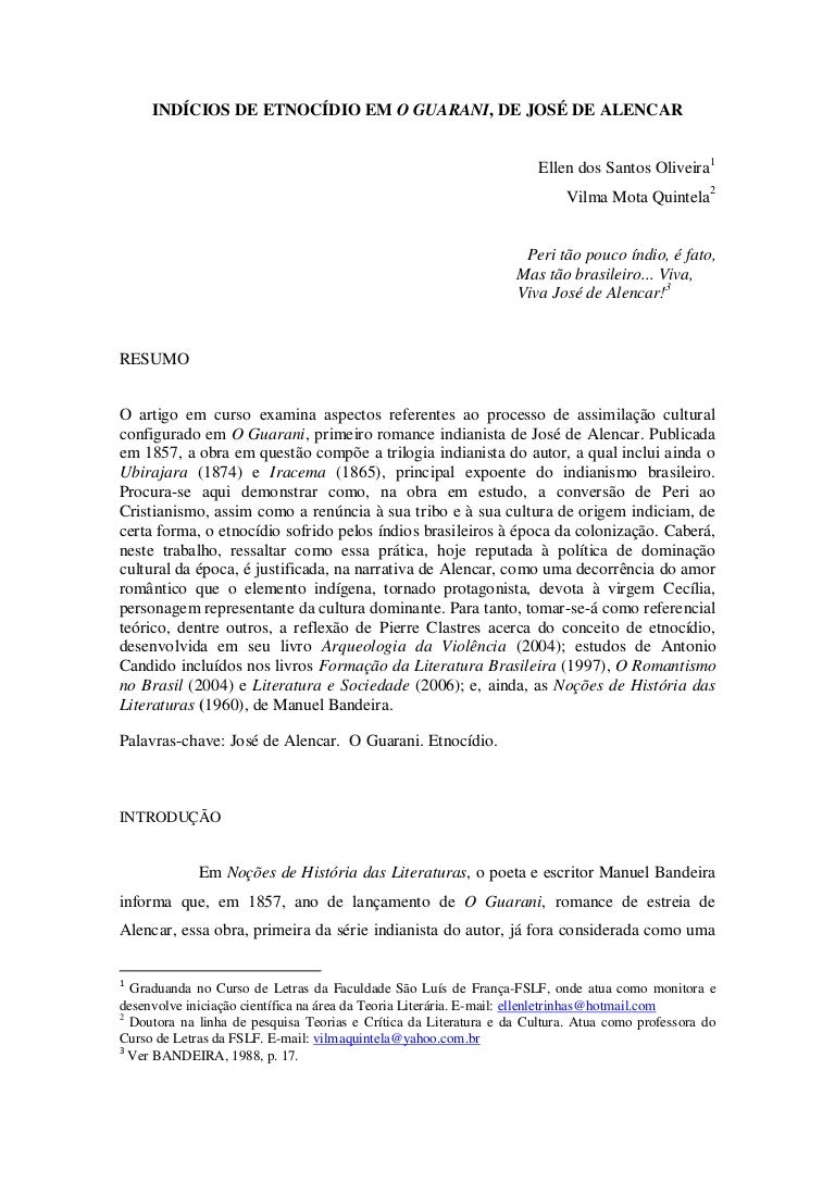 Application Name: Indicios De Etnocidio Em O Guarani De Jose De Alencar